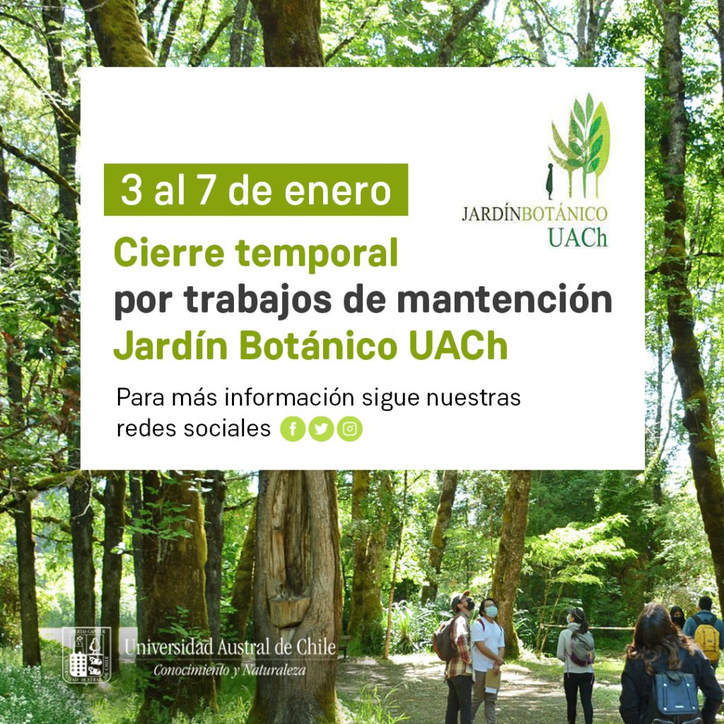 * Entre el 3 y 7 de enero de 2022 las dependencias del Jardín Botánico, ubicado al interior del Campus Isla Teja, permanecerán cerradas para poder efectuar trabajos de limpieza y despeje de árboles y especies deterioradas.