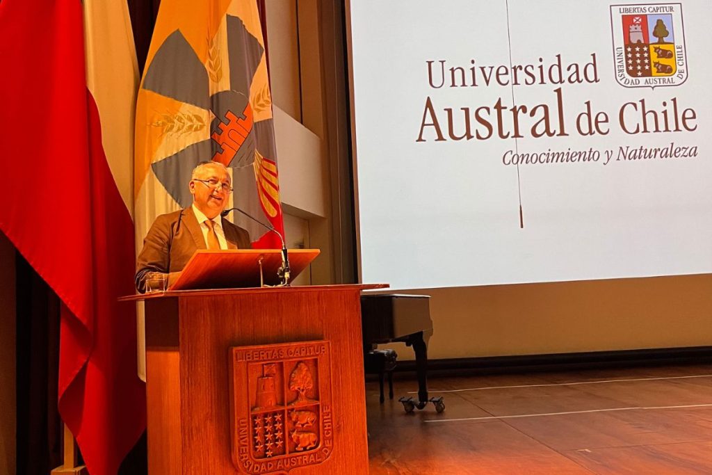 “Quiero saludar afectuosamente a las familias que hoy acompañan a quienes se gradúan; este logro también es de ustedes. Hoy celebramos el cierre de una etapa marcada por esfuerzo, dedicación y una profunda confianza en sus capacidades. La Universidad Austral de Chile, nacida desde una convicción regional y una sana rebeldía por construir conocimiento desde el sur hacia el mundo, ve en esta nueva generación la continuidad de ese espíritu. Nuestros nuevos profesionales llevan consigo una formación que entiende la ciencia como un acto de responsabilidad con la sociedad y los territorios. La educación es la herramienta más poderosa para transformar realidades, y hoy ustedes comienzan una nueva etapa para poner ese conocimiento al servicio del país”, manifestó el Rector Montecinos.